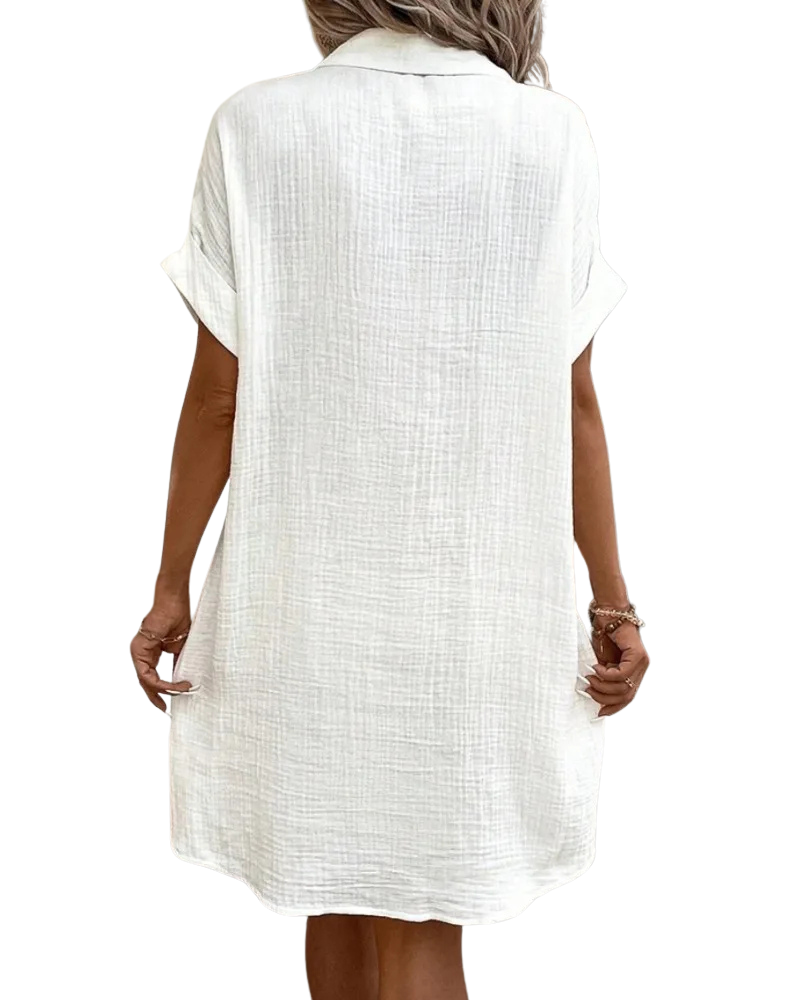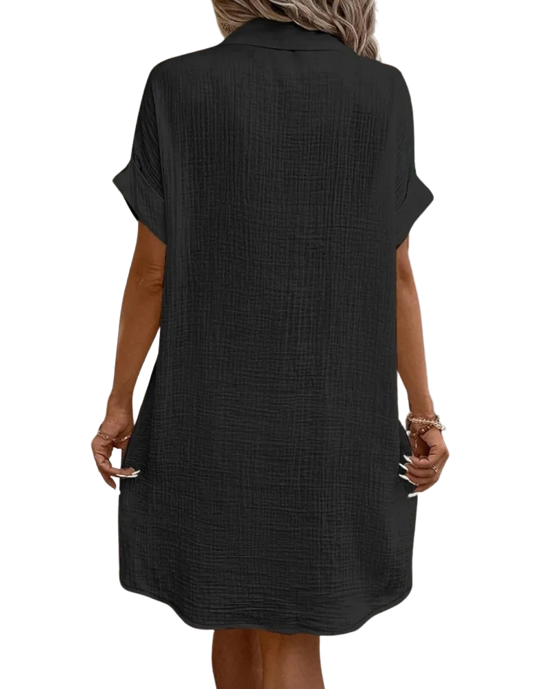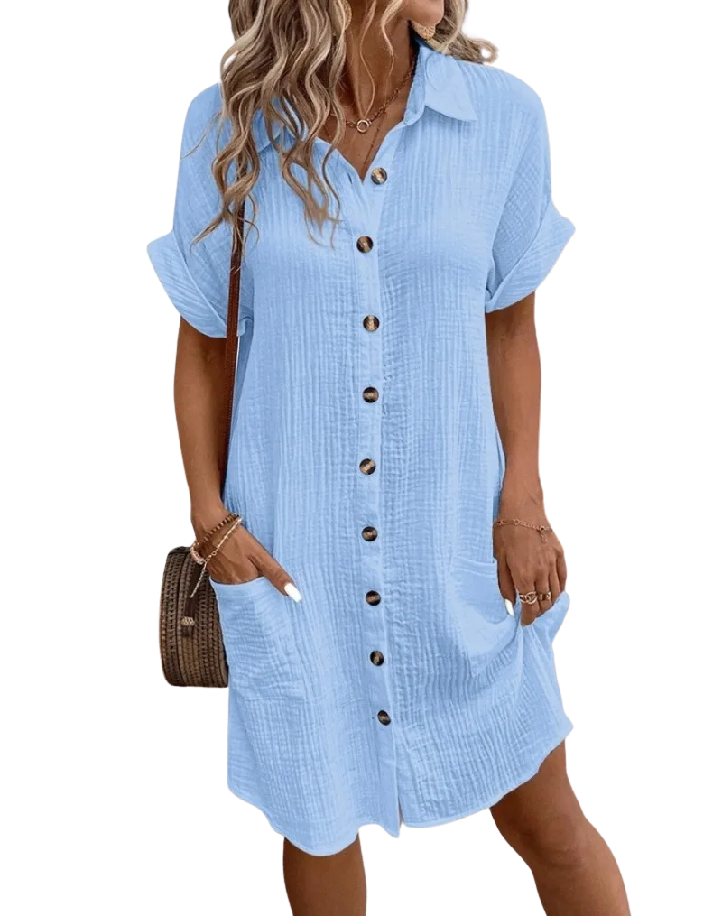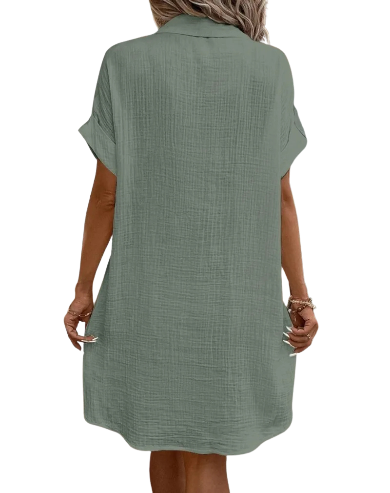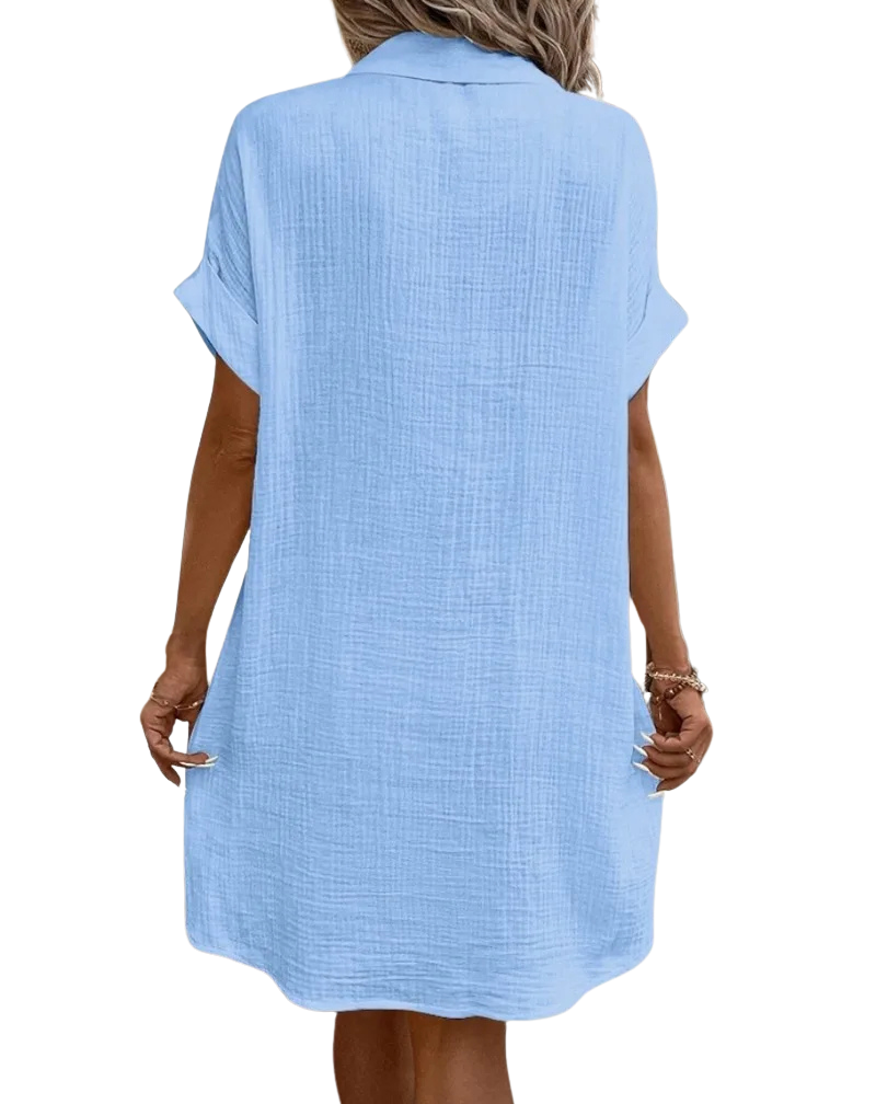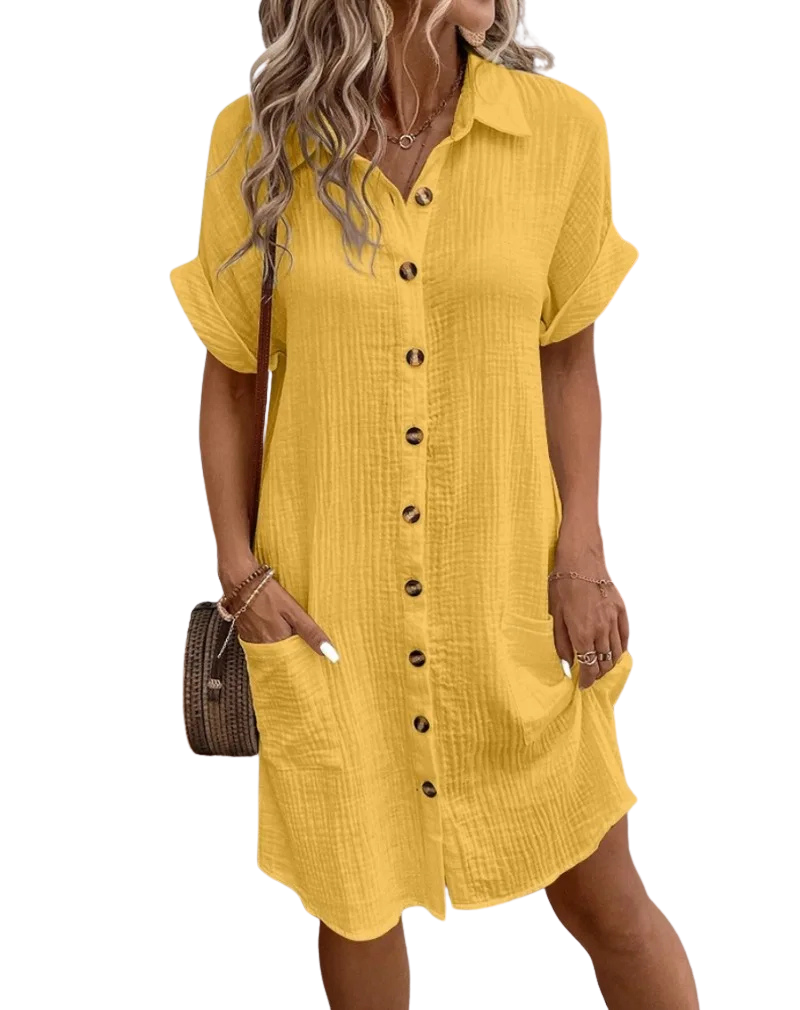 Vestito leggero e comodissimo, il tessuto in cotone è traspirante e piacevole sulla pelle. Il colore è luminoso e valorizza subito l’outfit. Versatile e curato nei dettagli, lo consiglio assolutamente!